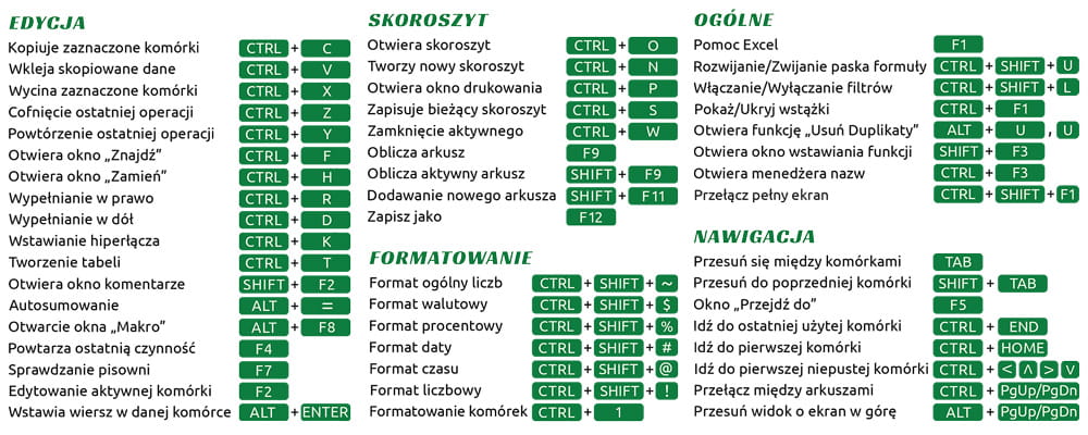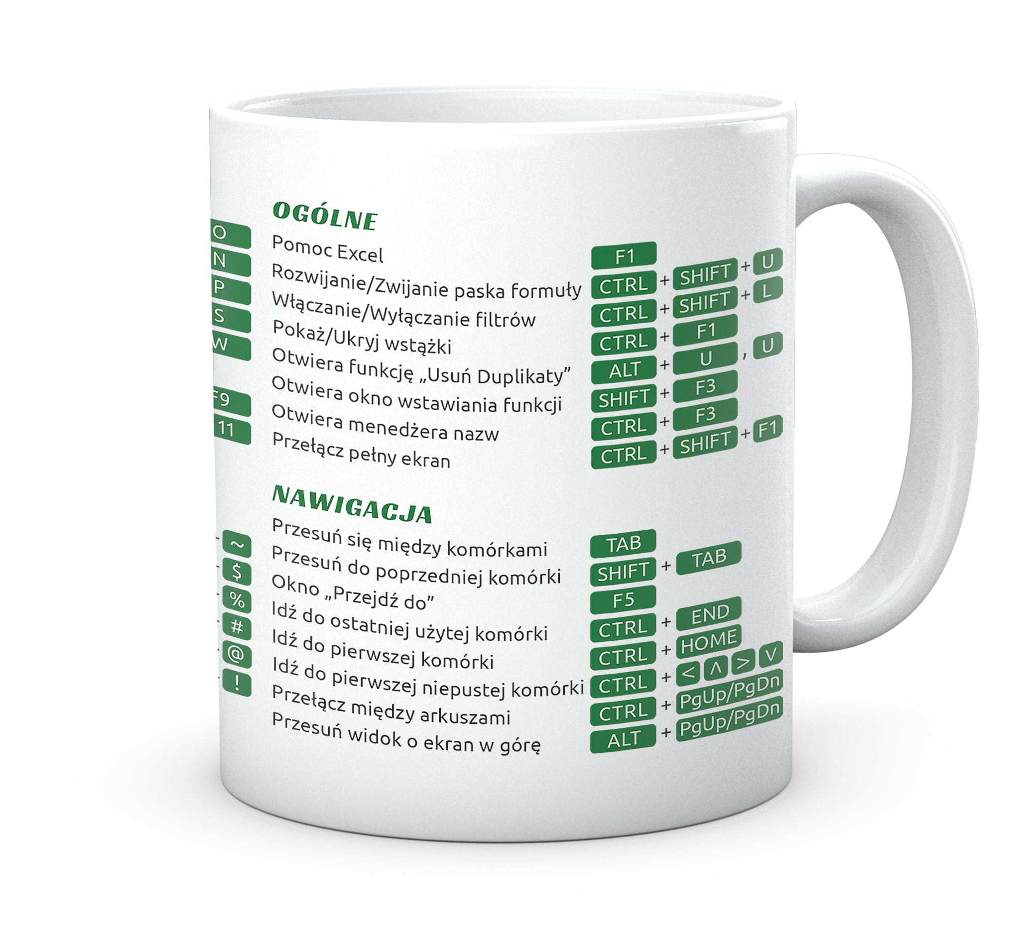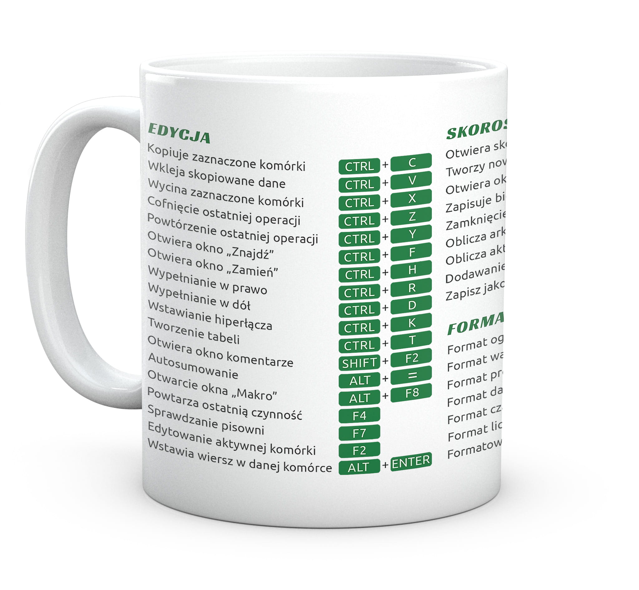 Arkusz Office Excel skróty klawiaturowe. Kubek do kawy prezent do pracy biura.