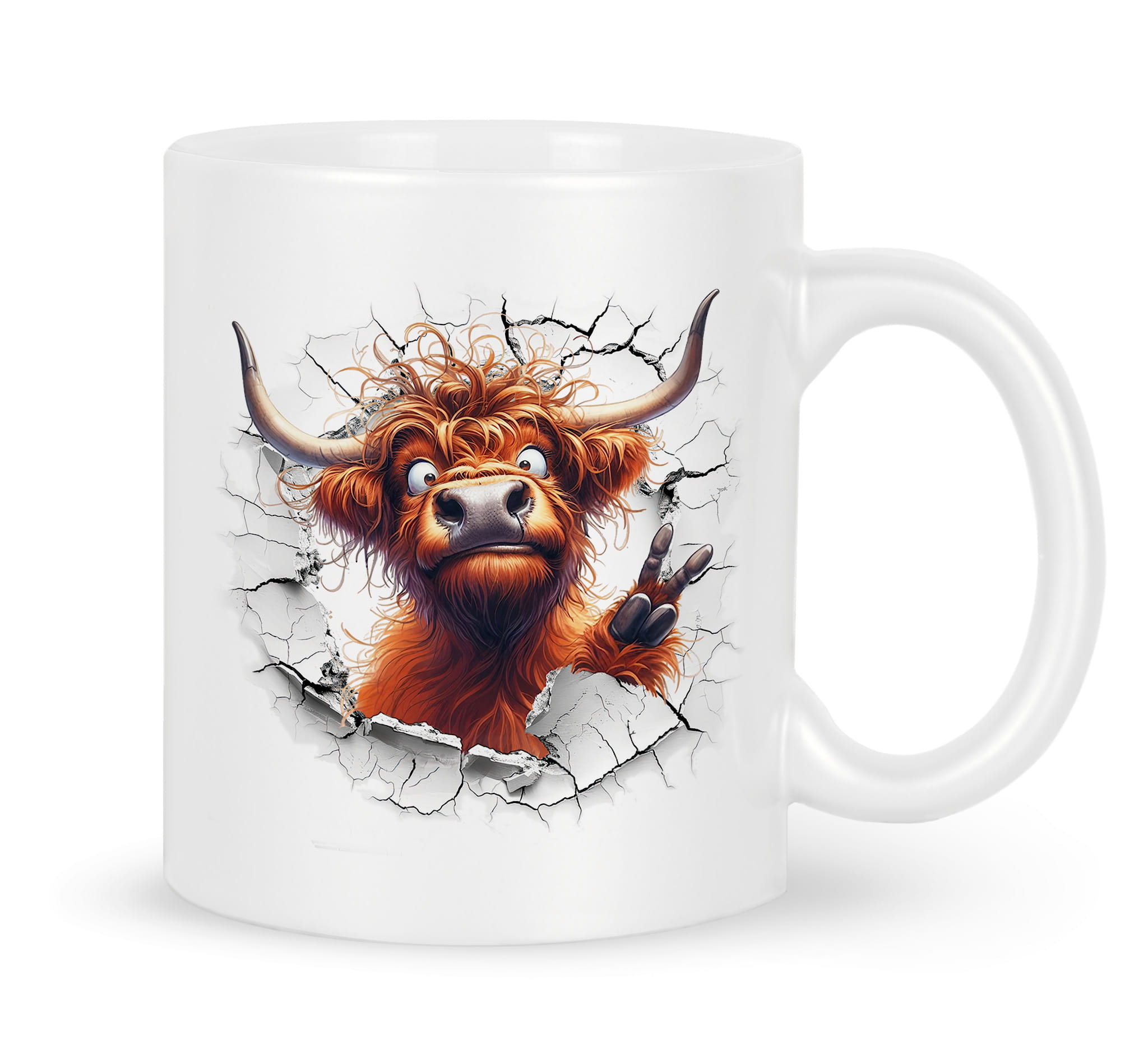 Gadżet śmieszny kubek z nadrukiem grafiki Szkocka Krowa.