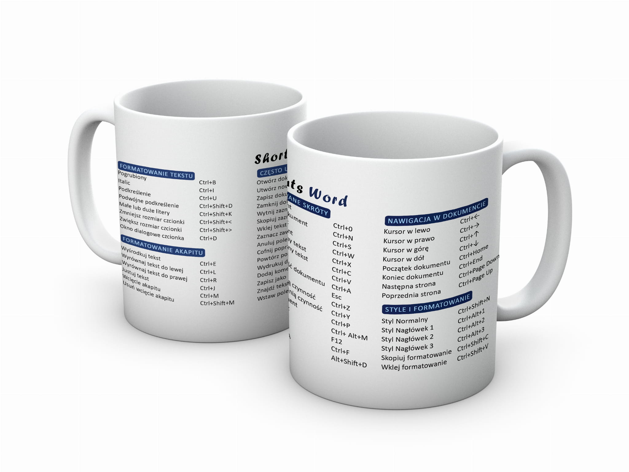 Kubek z nadrukiem skrótów klawiaturowych komputera PC. Zwiększ swoją produktywność dzięki kubkowi ze skrótami do Word!