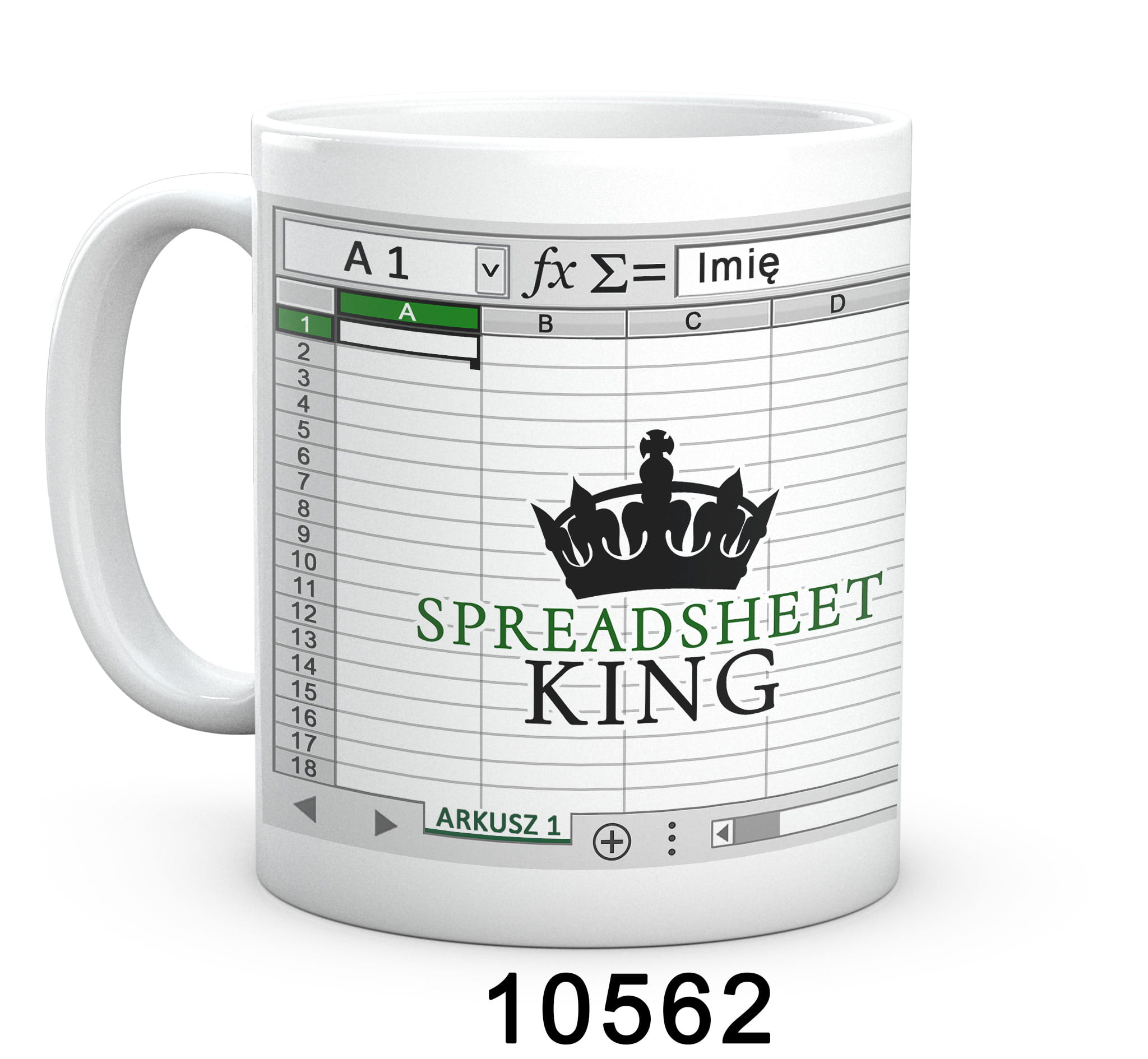 Microsoft Excel Arkusz Kalkulacyjny Kubek Prezent do Pracy Biura. Spreadsheet Queen or King Królowa King.