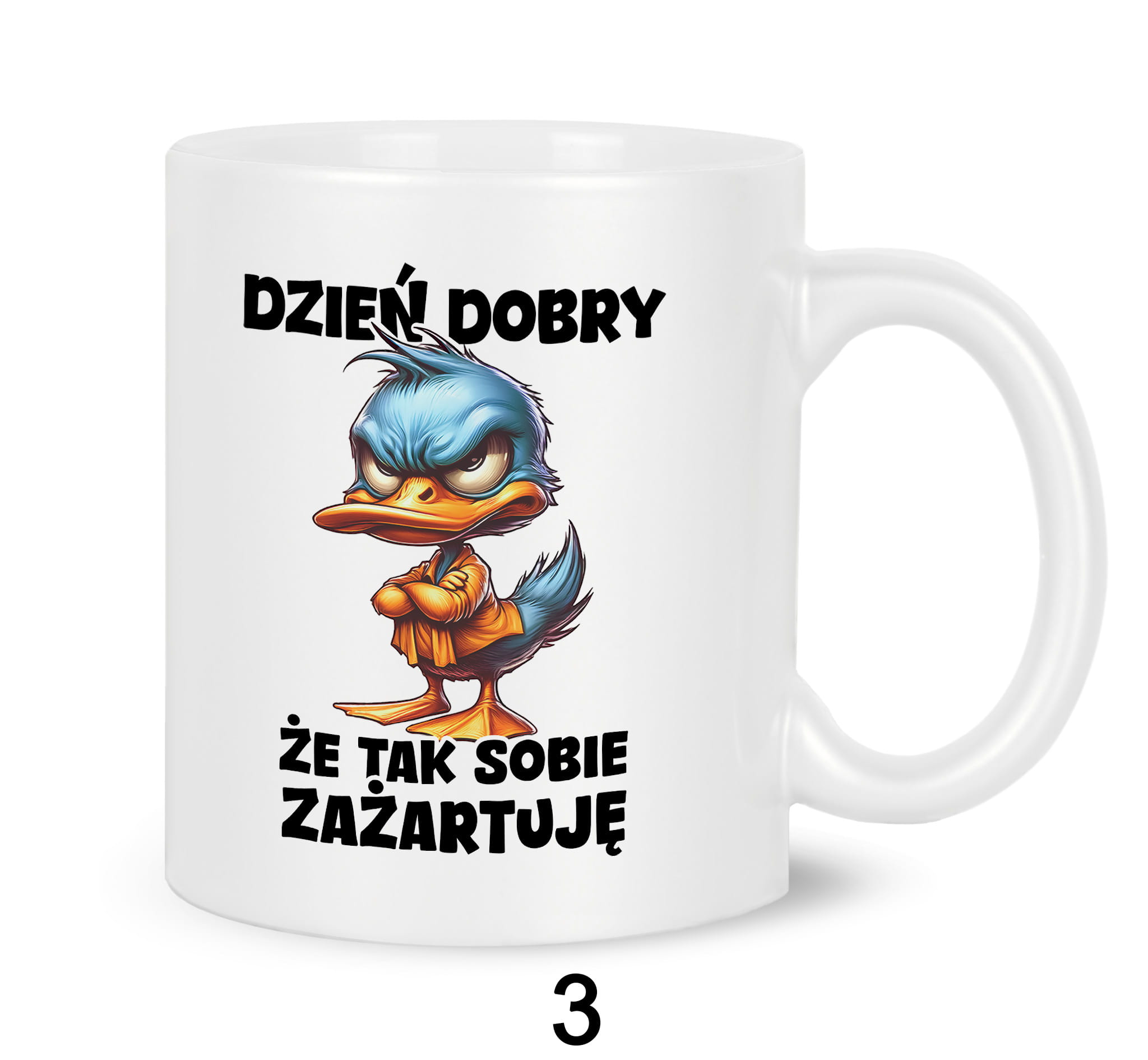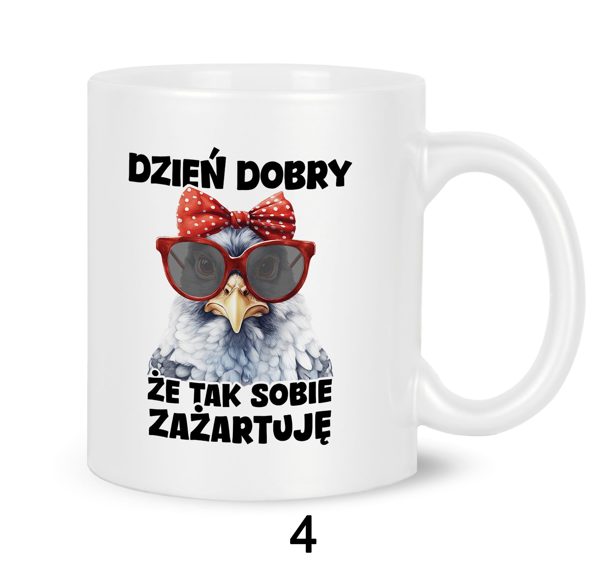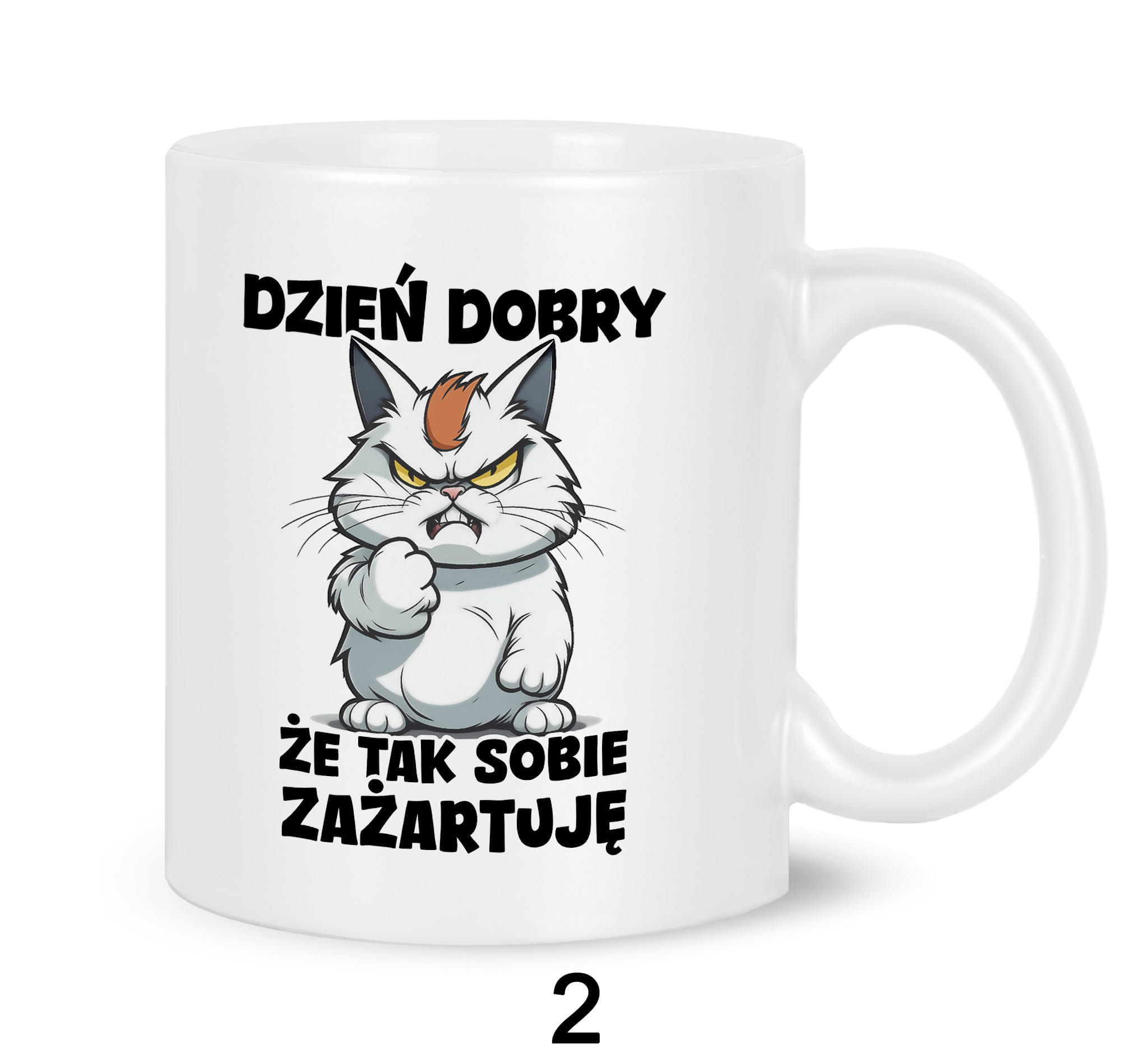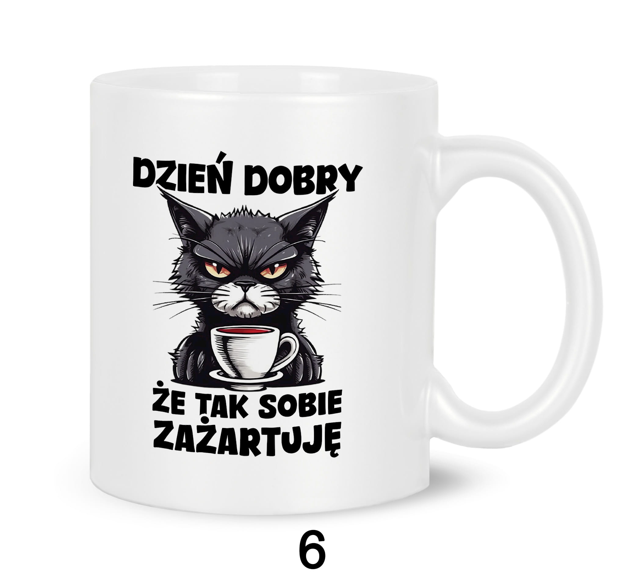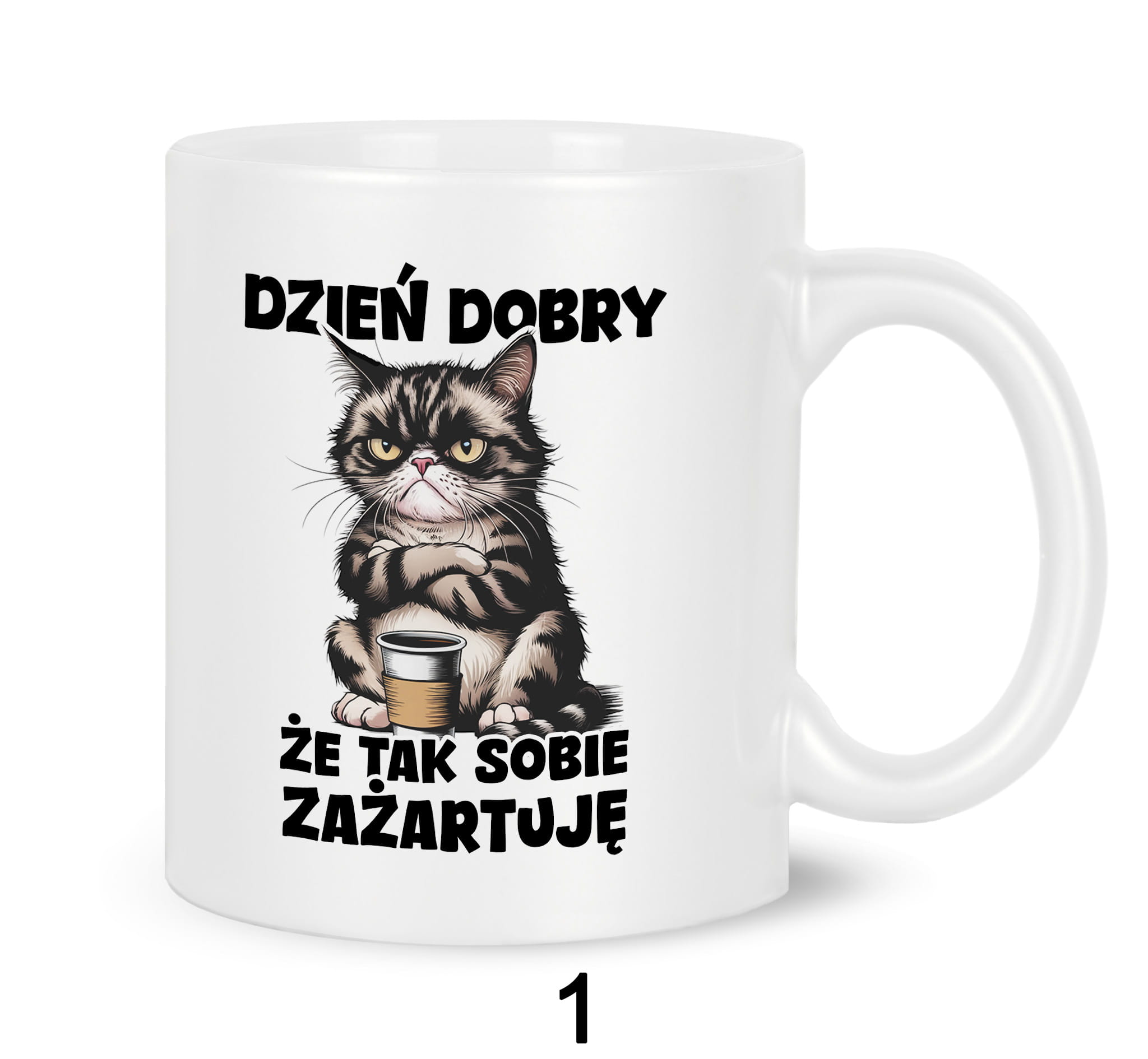 Kubki z nadrukiem grafiki tekstu: "DZIEŃ DOBRY, ŻE TAK SOBIE ZAŻARTUJĘ".