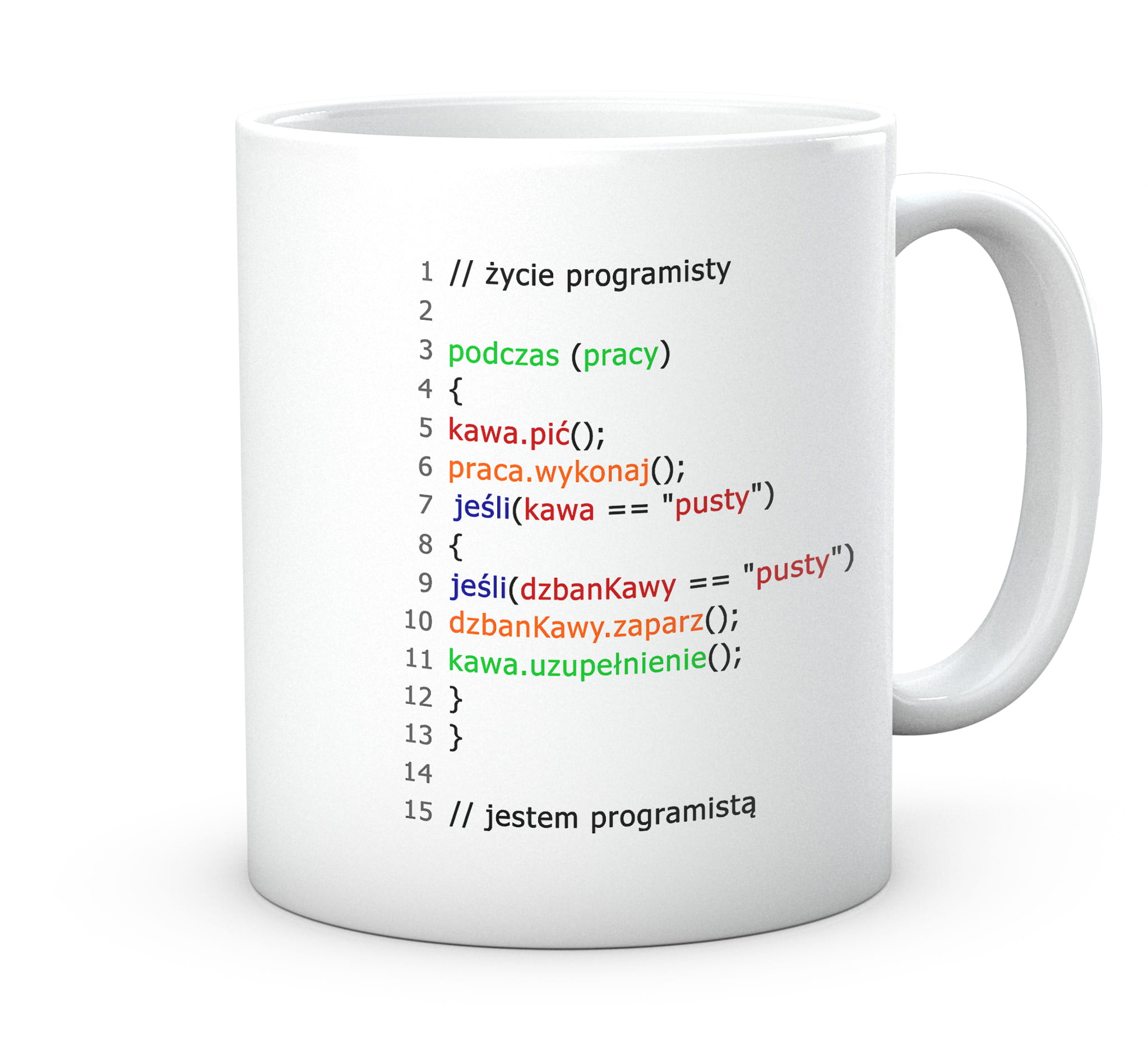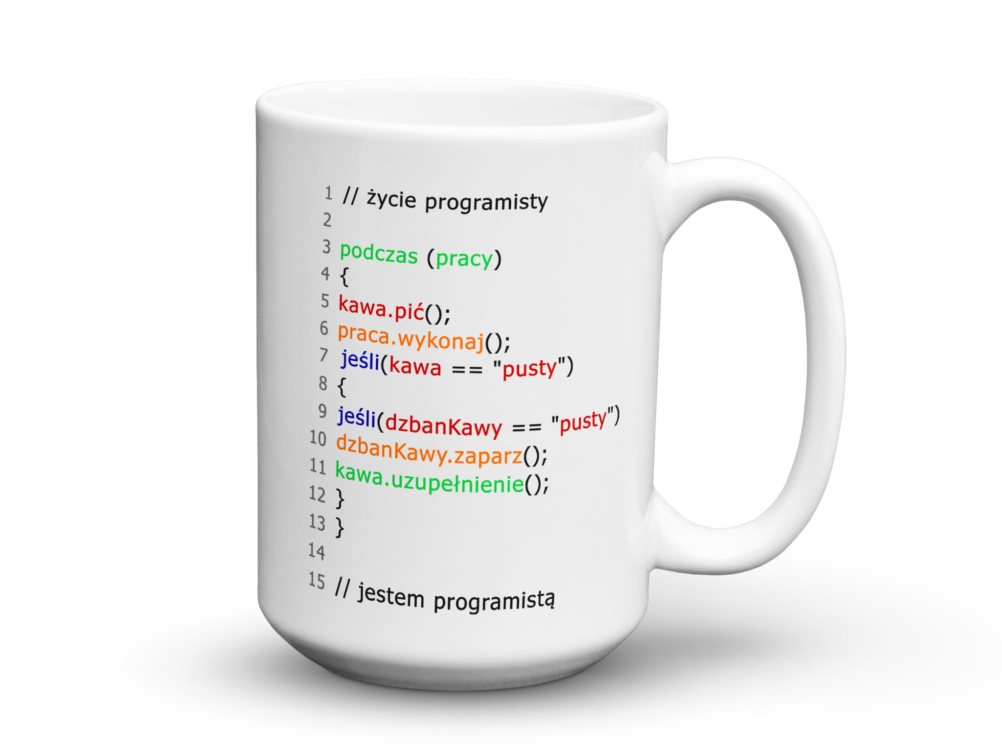 Czy jesteś profesjonalistą kodowania z wieloletnim doświadczeniem, czy tylko entuzjastą kodowania, który właśnie zaczyna swoją przygodę, ten kubek "Życie programisty" jest stworzony dla Ciebie.