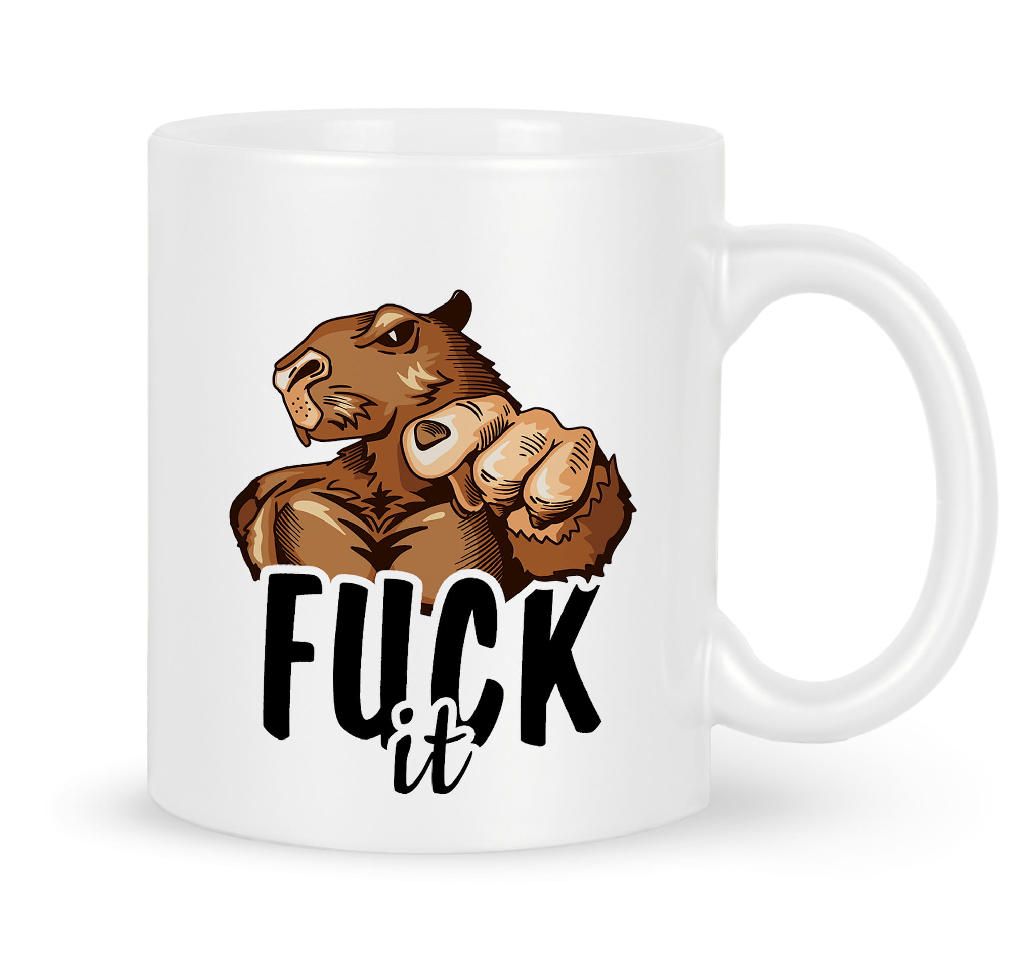 Kubek śmieszny z Kapibarą Fuck It. Prezent do pracy biura zabawny kubek.