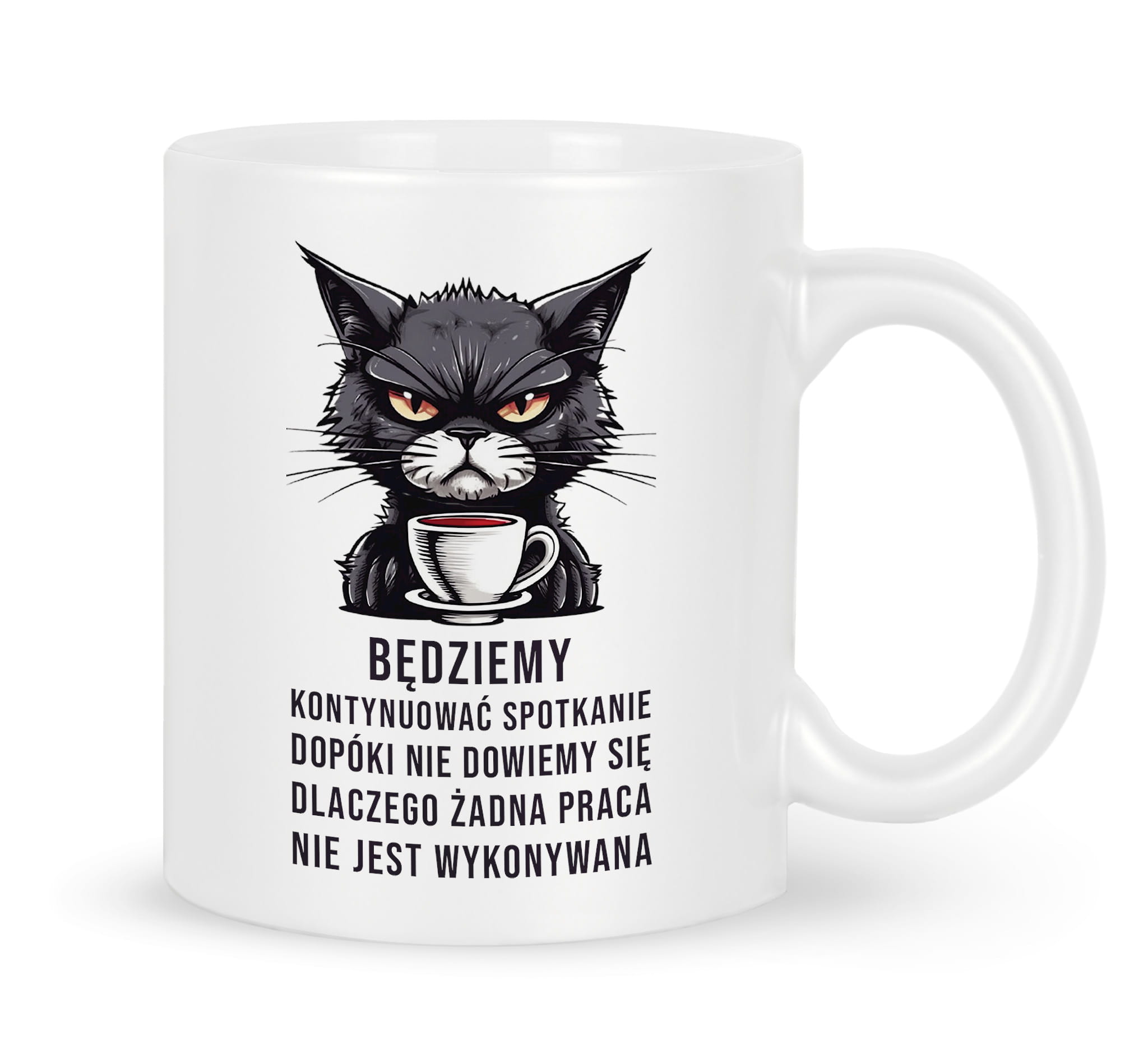 Kubek do pracy. Będziemy kontynuować spotkanie dopóki nie dowiemy się dlaczego żadna praca nie jest wykonywana.