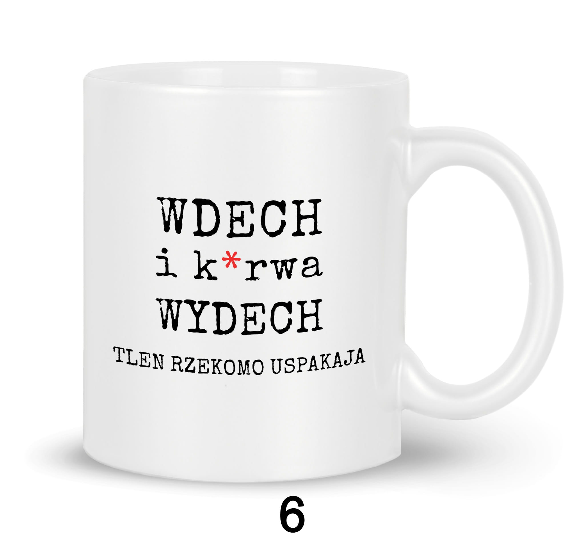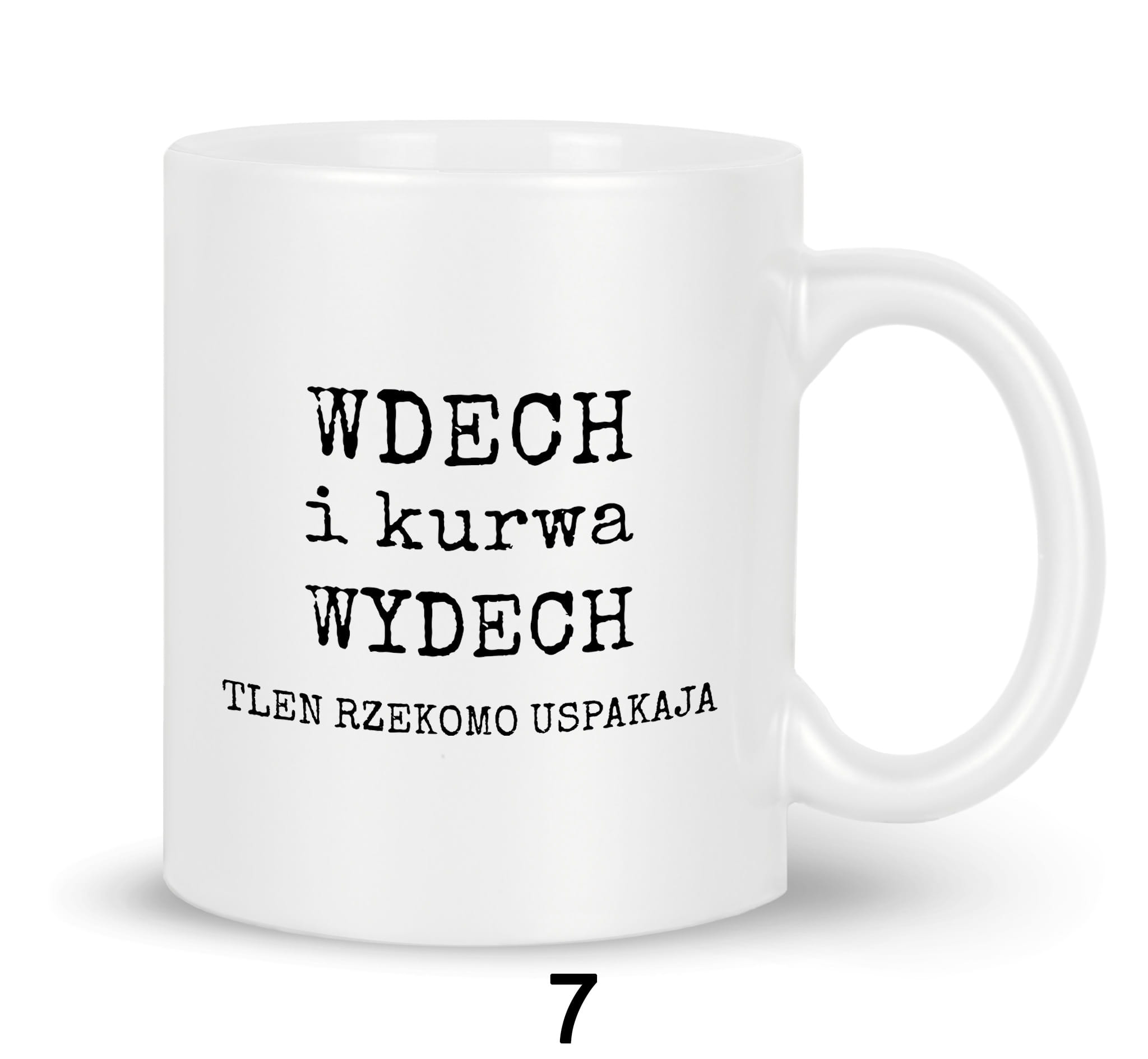 Kubki z nadrukiem memów zabawnych cytatów, sarkastycznych tekstów, śmiesznych powiedzonek.