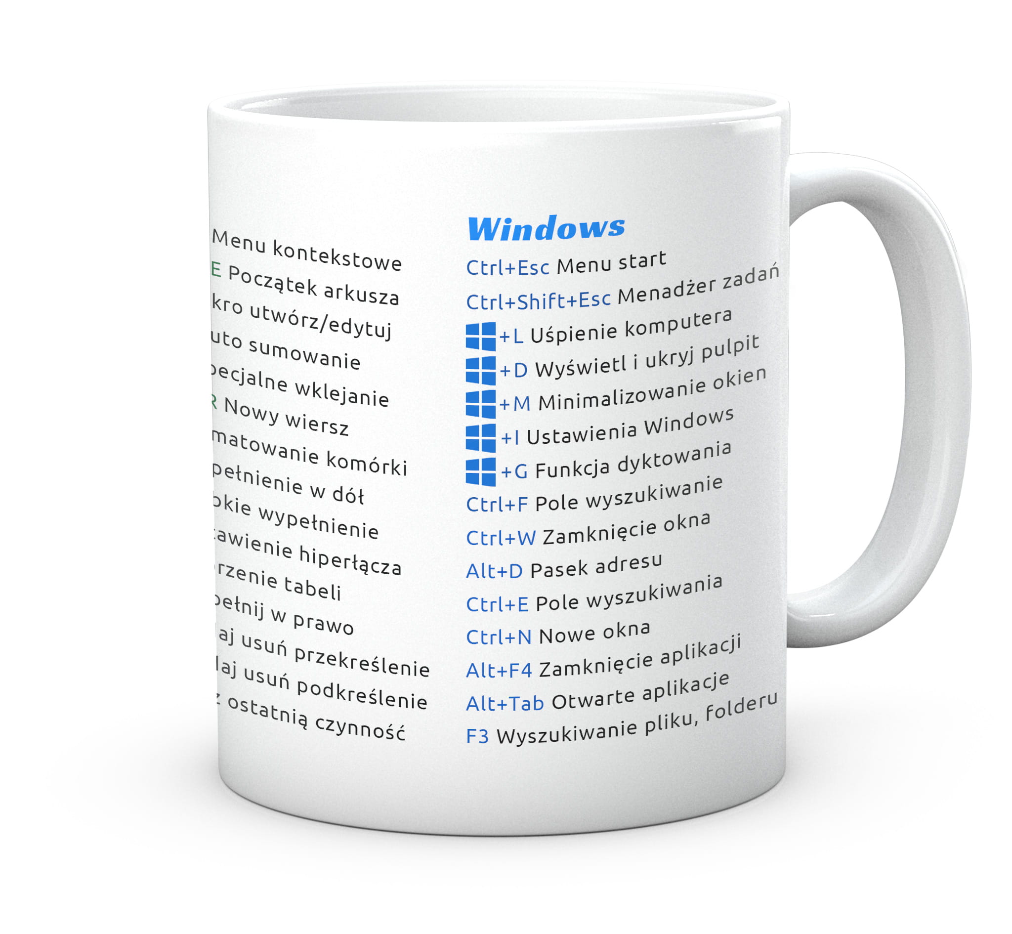 Kubek prezent do pracy skróty Microsoft Windows, Arkusz Kalkulacyjny Excel, Edytor Tekstu Word.