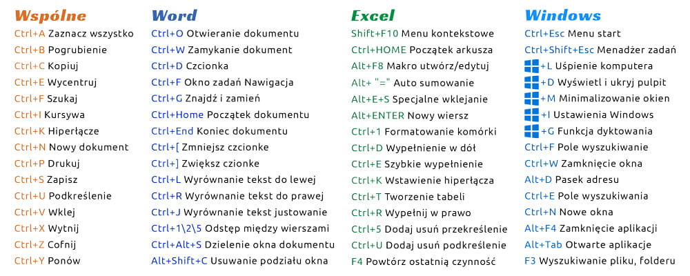 Kubek skróty Office Excel Word Windows