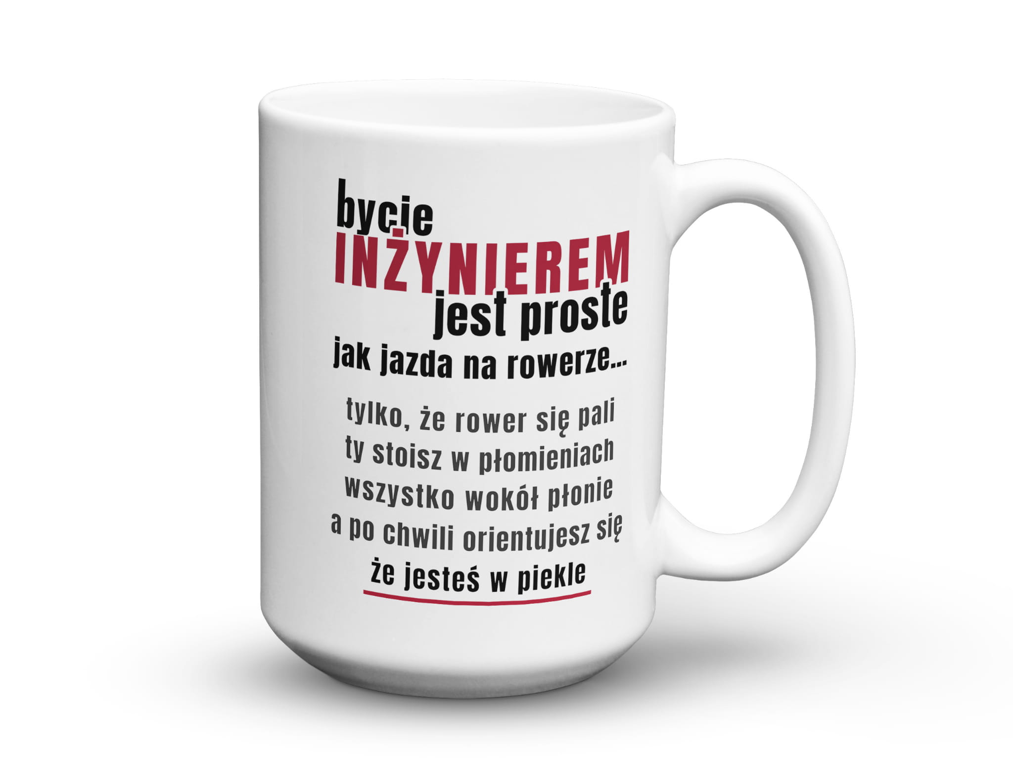 Bycie inżynierem jest proste jak jazda na rowerze... Doskonały prezent dla osób na stanowiskach inżynierskich. Kubek na każdą okazję.