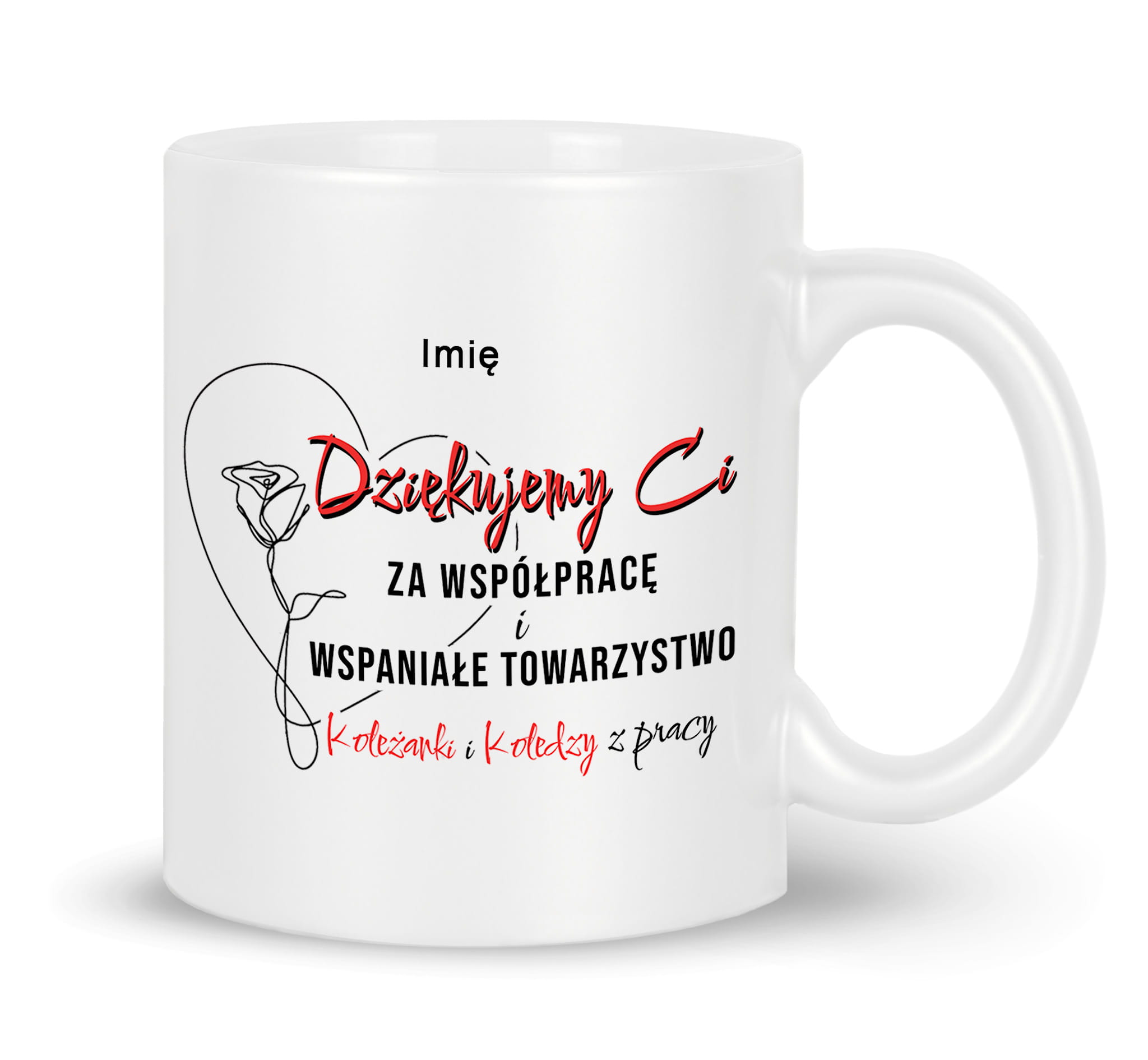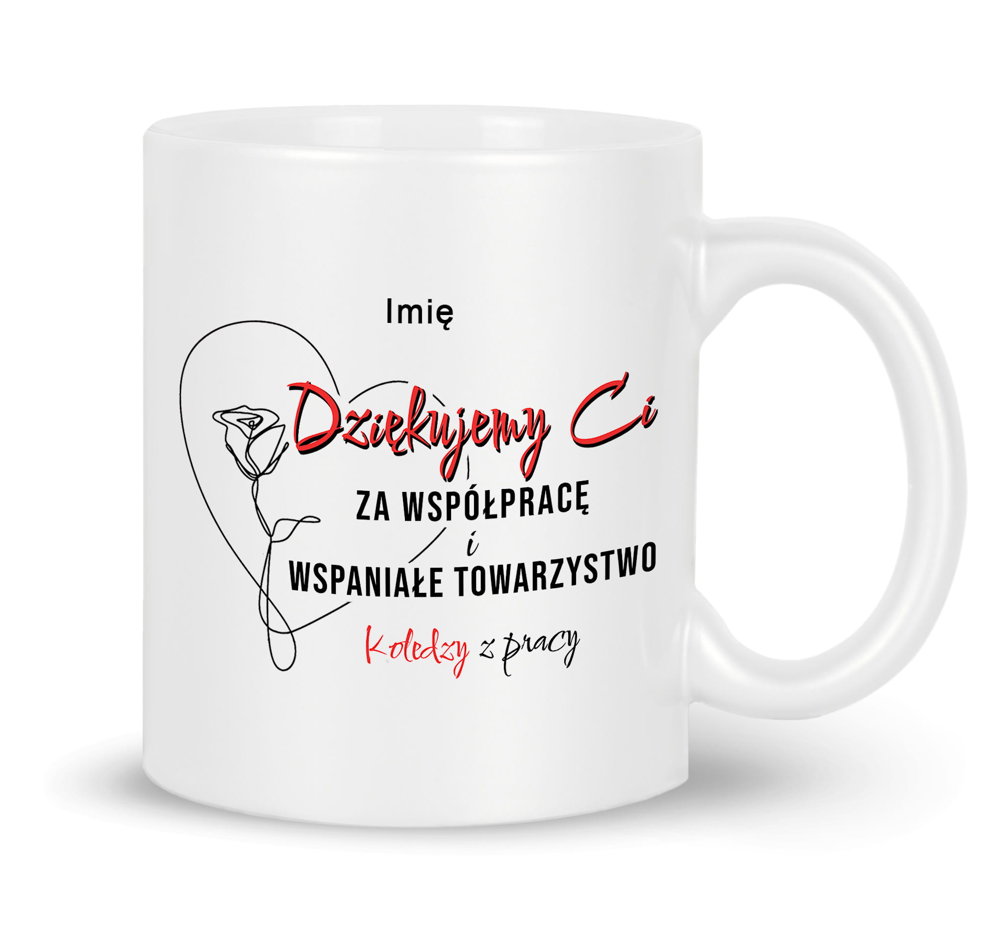 Kubek z nadrukiem prezent pożegnanie koleżanki kolegi z pracy.