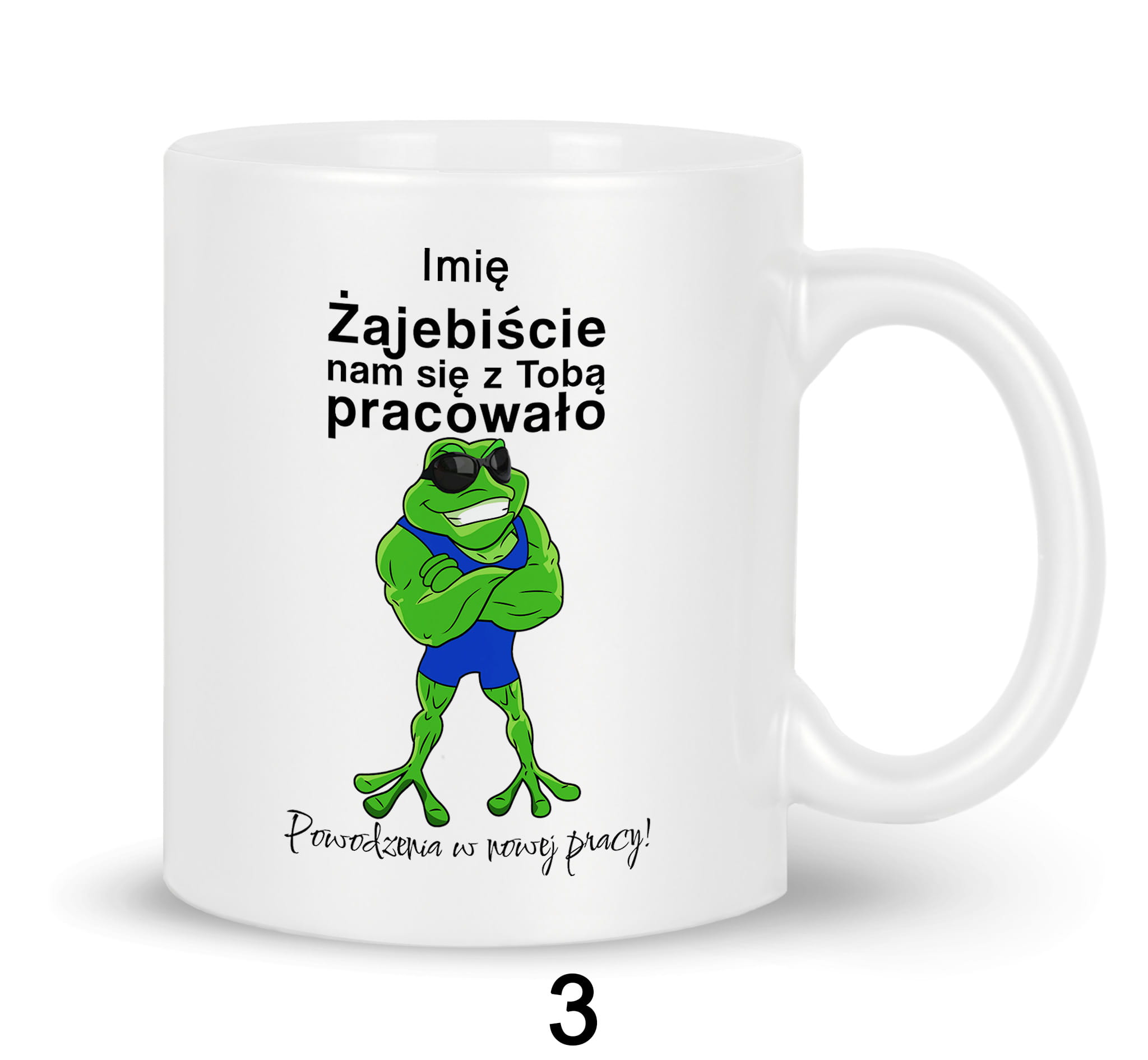 Śmieszny prezent kubek z nadrukirm na pożegnanie z pracy współpracownika.