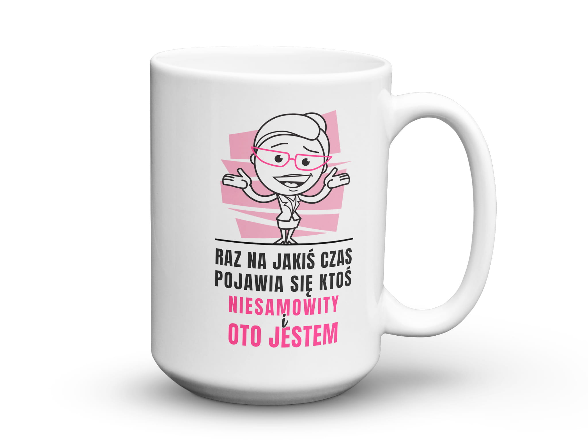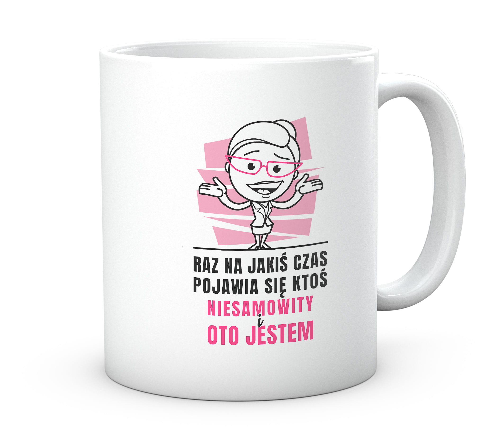 Śmieszny prezent kubek z nadrukiem grafiki do pracy, biura, domu dla kobiety. Raz na jakiś czas pojawia się ktoś niesamowity i oto jestem.