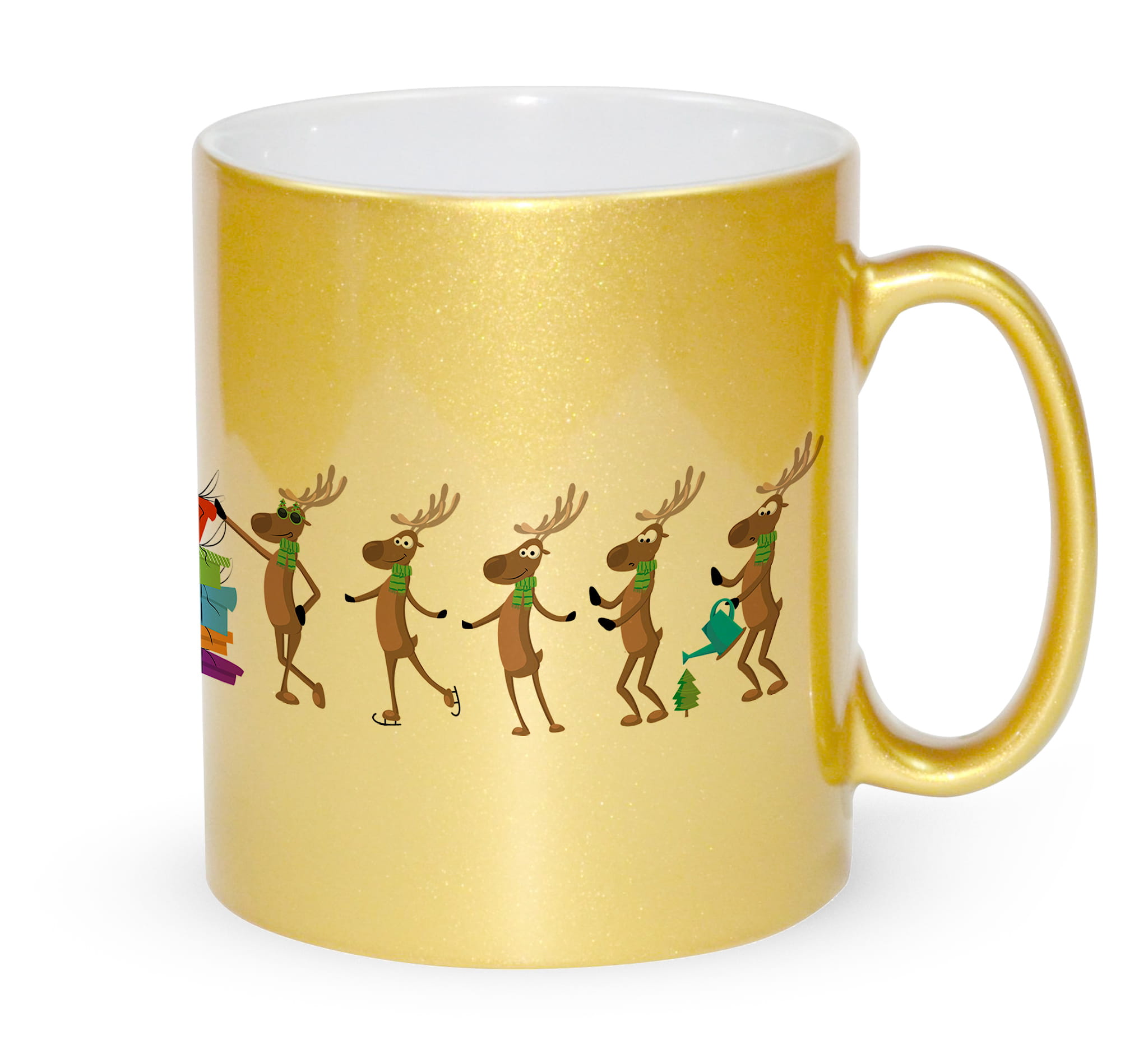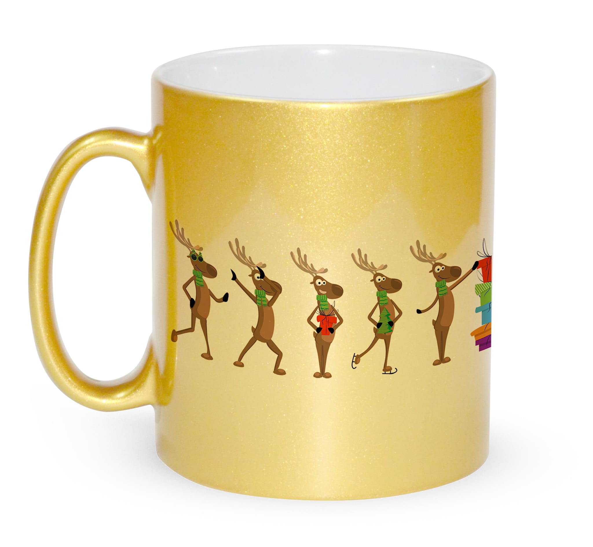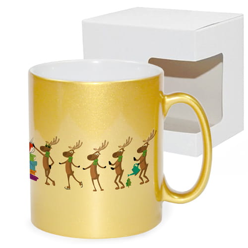 Kubek złoty z nadrukiem zabawne renifery prezent na święta Bożego Narodzenia pod choinkę.